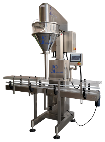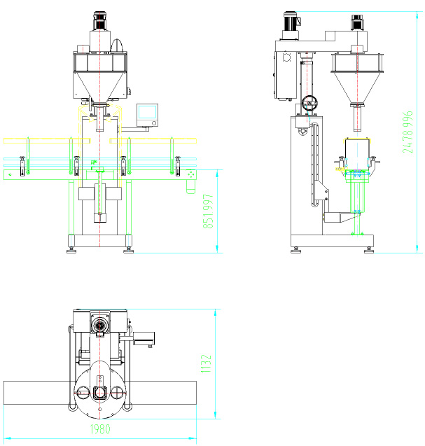 該機(jī)主要針對容易揚(yáng)塵的超細(xì)粉末及高精度的包裝要求而開發(fā)設(shè)計,能完成瓶子自動定位和升降、充填及計量等工作,它由一臺稱重式螺桿充填機(jī)、一臺鏈板輸送帶及一個氣動定位裝置組成,根據(jù)裝在容器下面的重量傳感器給出的信號完成雙速充填、計量及升降等工作。適用于包裝添加劑、碳粉、滅火器干粉、其它超細(xì)粉末、及有高精度包裝要求的粉末等。